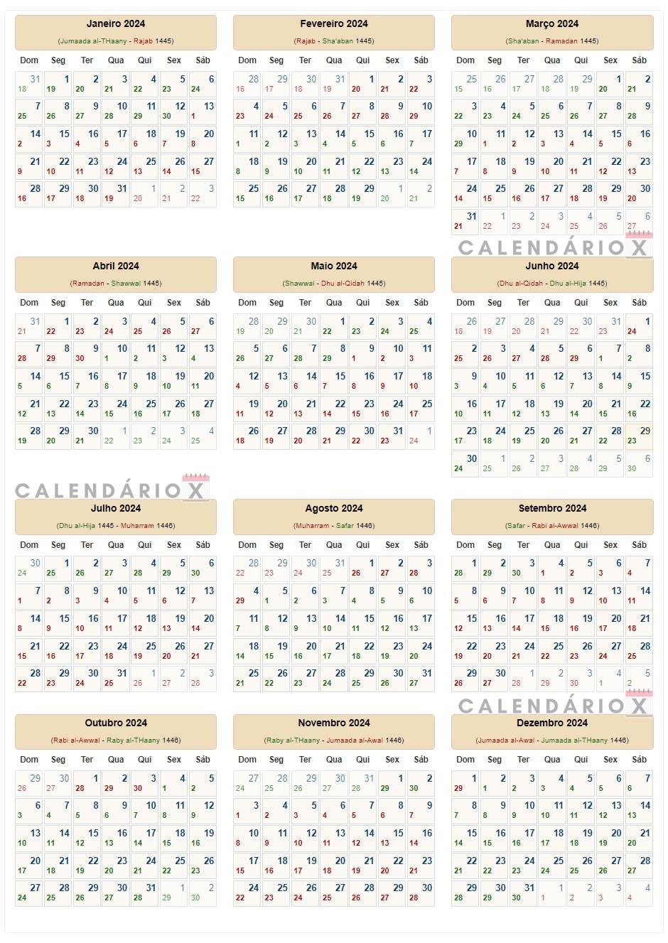 Calendário islâmico (Hijri) de 2024.