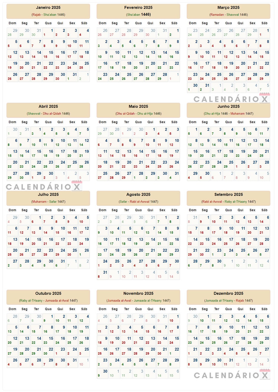 Calendário islâmico (Hijri) de 2025.
