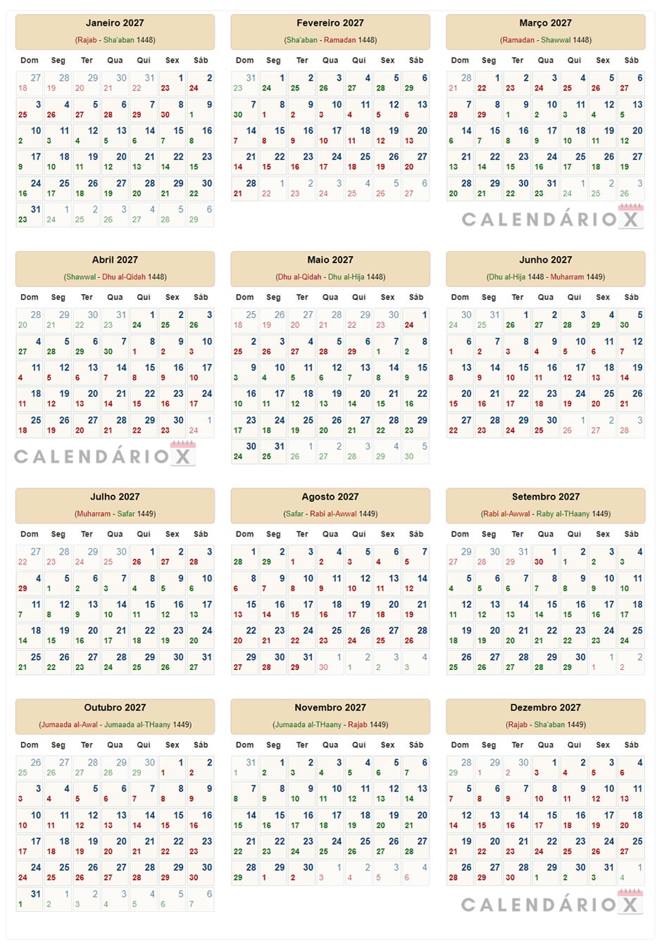 Calendário islâmico (Hijri) de 2027.