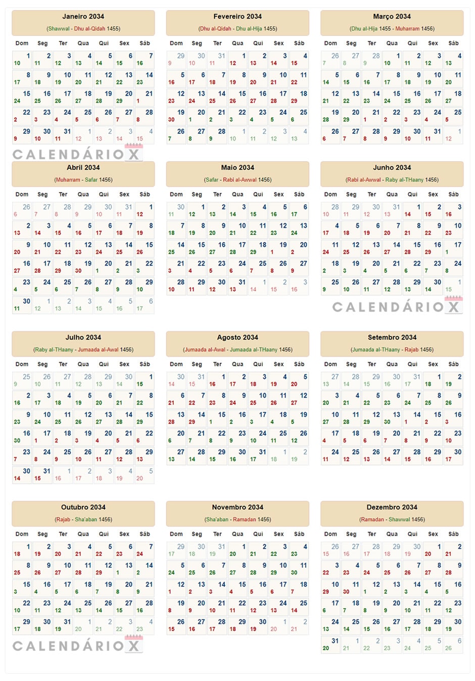 Calendário islâmico (Hijri) de 2034.